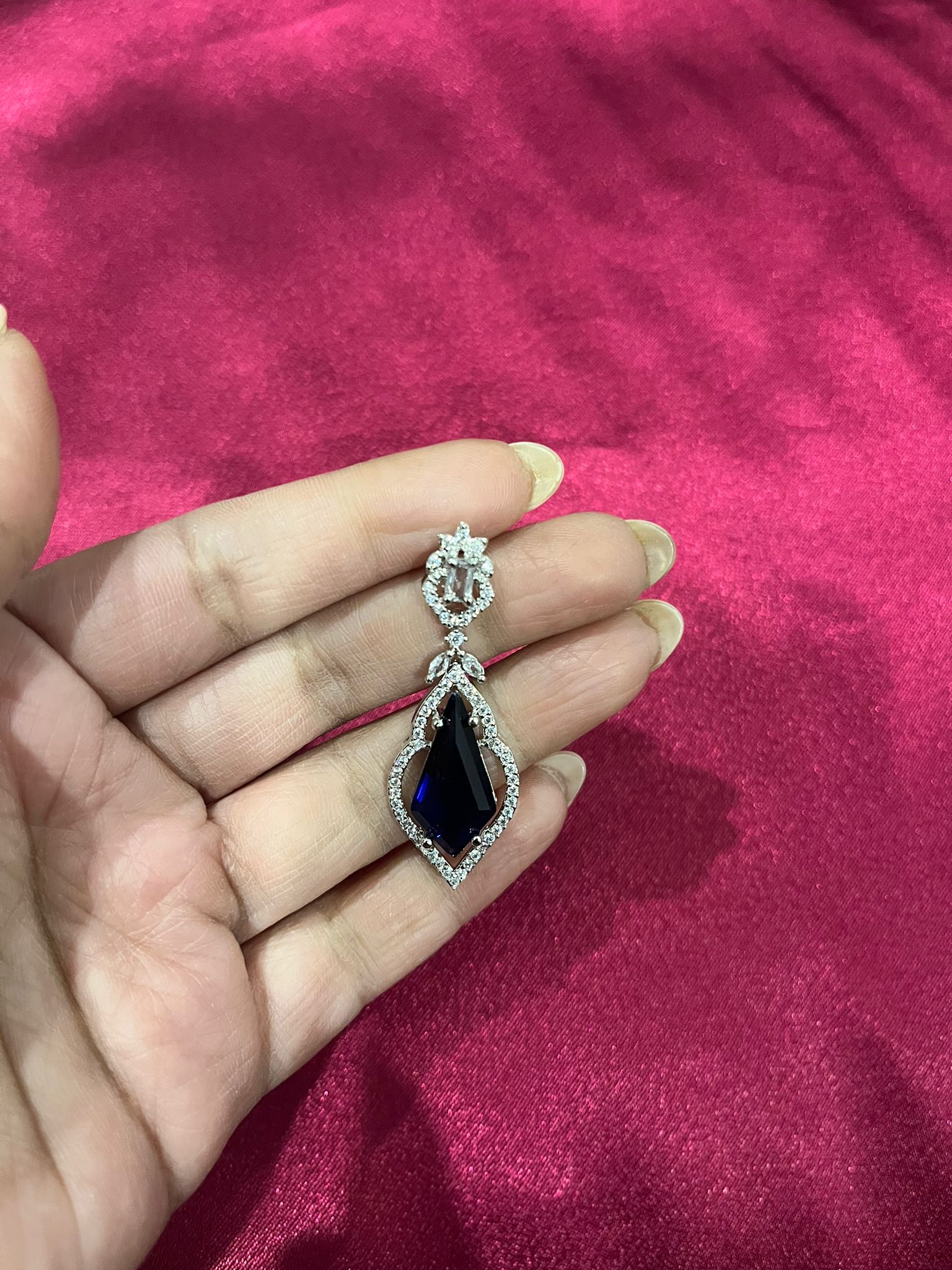 CZ Earrings with Royal Blue Stone
